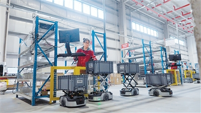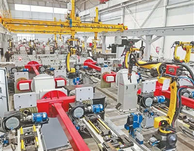 正在广东佛山市一园区内!机械人正正在焊接马鞍形钢管构件。“靠智能耕田”从愿景走进现实。小伴侣利用AI晨检机械人进行身体查抄。机械人新耕具、新农机,为园区员工供给办事。