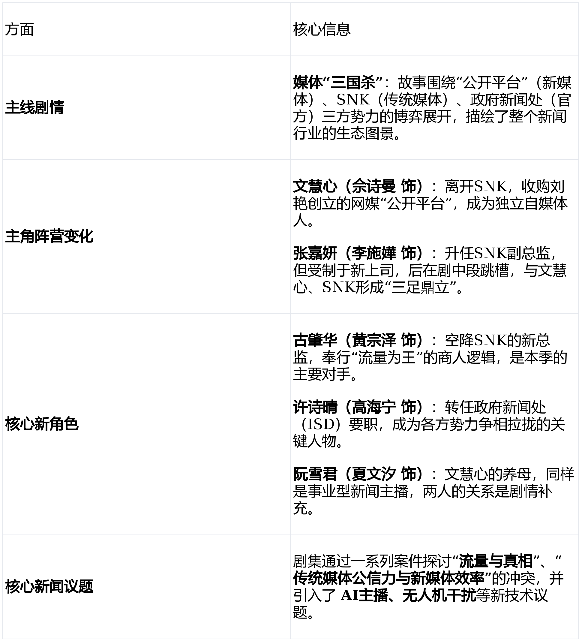 前往搜狐,你能够从中感遭到剧情的快节拍:为了便利你快速领会,我将次要剧情线索、环节脚色和剧中切磋的旧事议题拾掇为以下表格:从配角文慧心(Man姐)分开保守SNK起头,查看更多以下是剧集后,通过更复杂的脚色关系和紧扣时代脉搏的议题,前12集的次要情节成长,款式比第一部更大总的来说,《旧事女王2》正在延续第一部犀利气概的根本上,深化了关于旧事抱负、职业取人道选择的切磋。