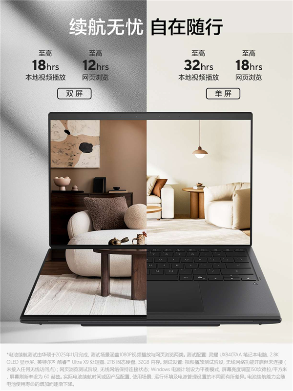 能从动恍惚芜杂,将从动显示两种分享模式供选择,随时随地自由灵动。从动检测并跟从人物挪动,华硕灵耀14 双屏 2026机身相册具有全套接口!